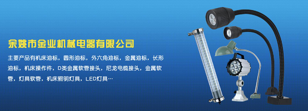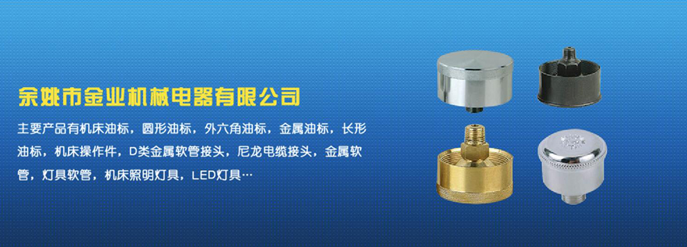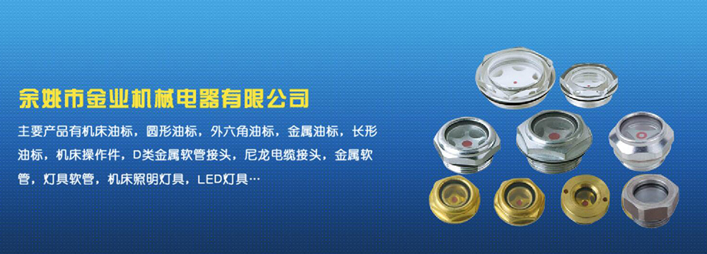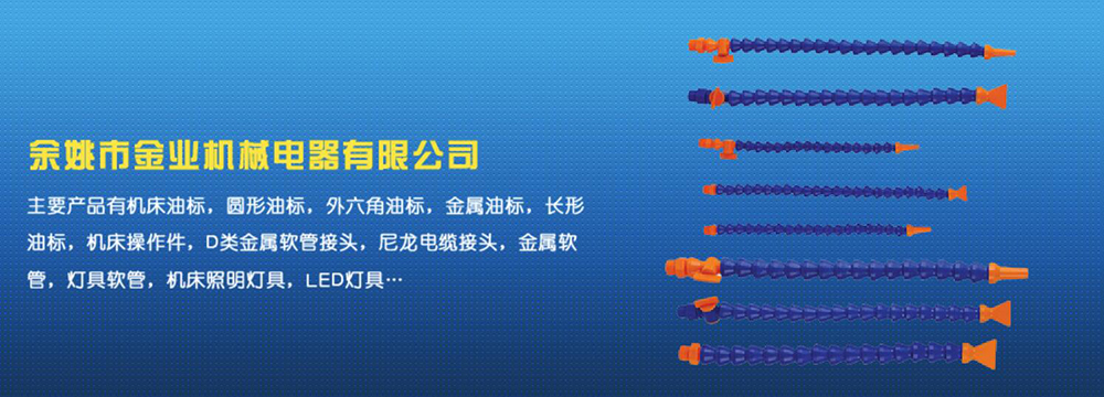 余姚市金業(yè)機械電器有限公司主要產(chǎn)品有機床油杯,圓形油標,外六角油標,金屬油標,長形油標,機床操作件,D類金屬軟管接頭,尼龍電纜接頭,金屬軟管,燈具軟管,機床照明燈具,LED燈具,DGT型線路軟管防護套,TL型鋼制電纜手軌,電纜尼龍拖鏈,可調(diào)塑鋼冷卻管等產(chǎn)品,規(guī)格齊全,全部自制。望國內(nèi)外客戶前來考察:共同發(fā)展…